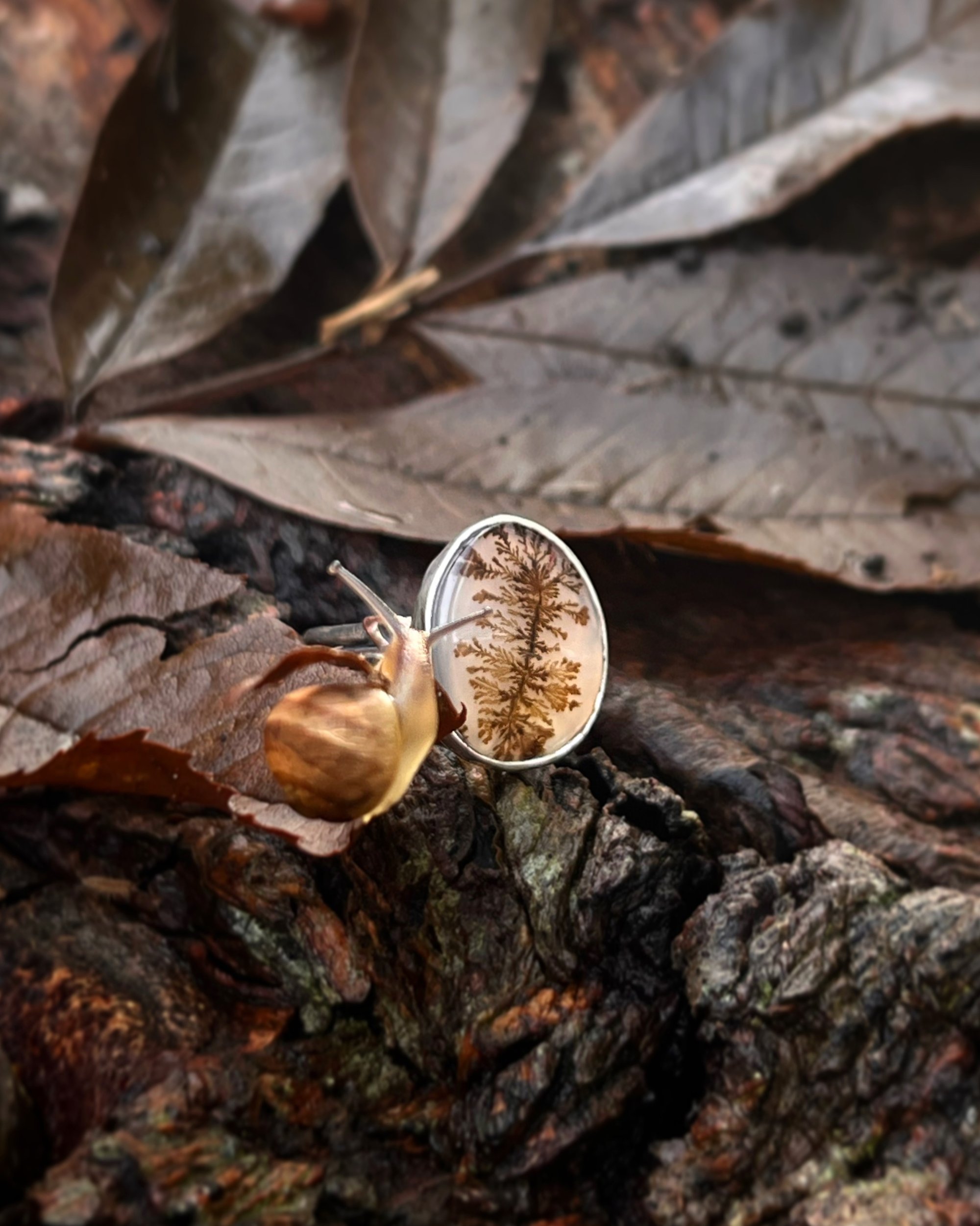 Even though it looks like a piece of trapped plant . The stones are naturally formed when iron oxides in water, fall through cracks in the rock and leave behind these brown or black natural designs !!